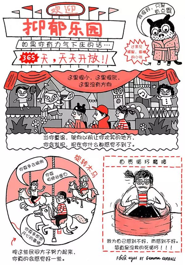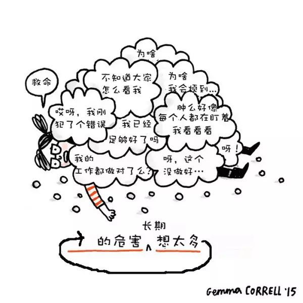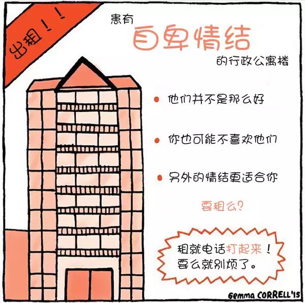 英国插画家Gemma Correl 以他自身的焦虑与抑郁情绪为依据,画下与焦虑抑郁共存的漫画。作者发现,抗击焦虑抑郁的更佳 *** ,就素找到它们内在的幽默因子。