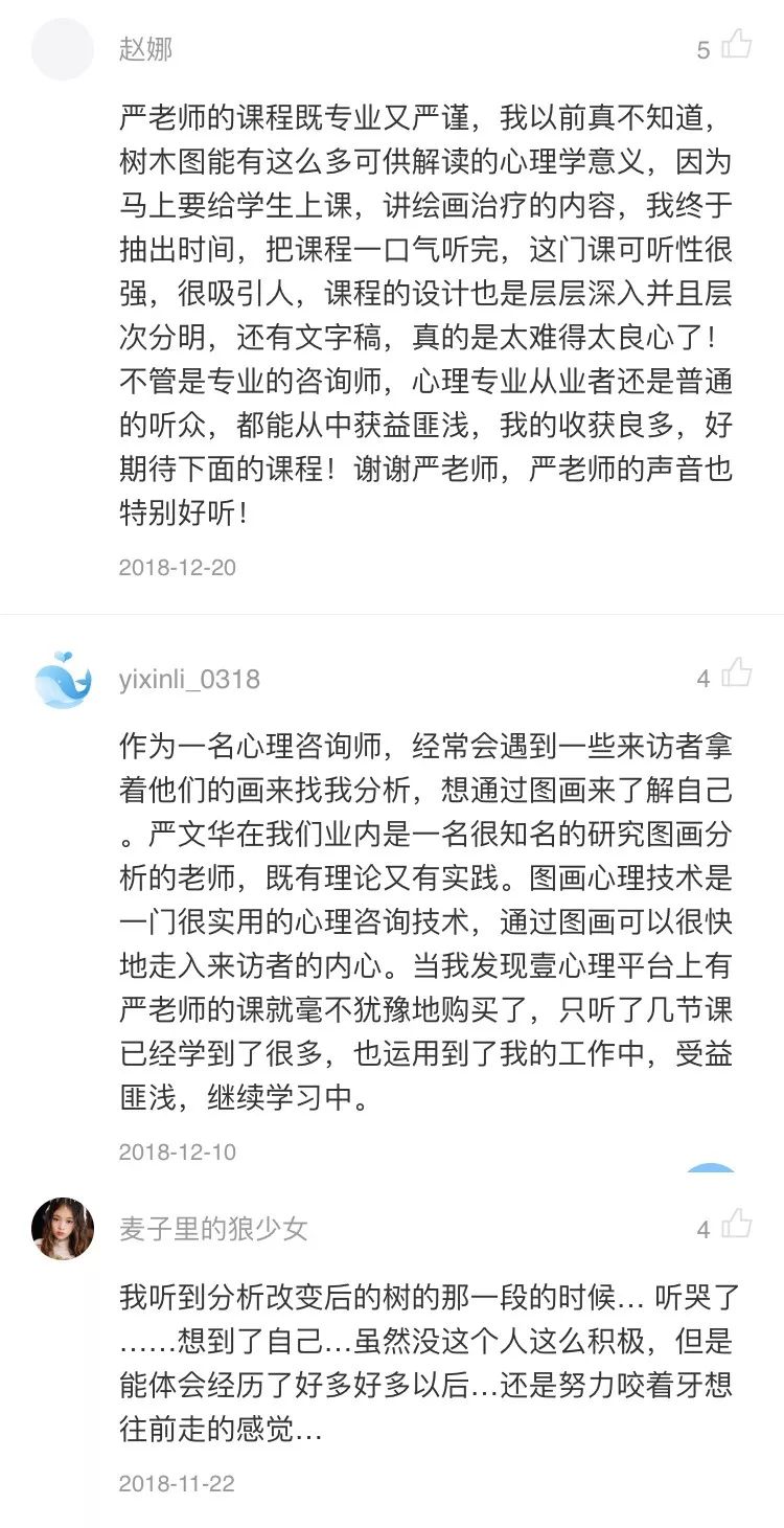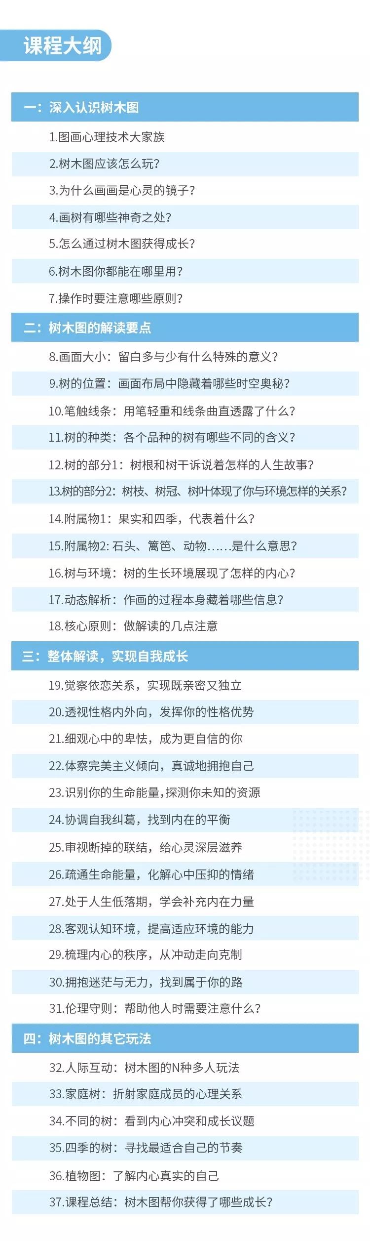 这次,她将结合近20年来访者的咨询精华,以及图画分析教学研究经验,浓缩为《跟严文华学树木人格图画:一张图读懂内心世界》课程,用心理学的 *** 带你通过“画树”探索自我,洞察人心。