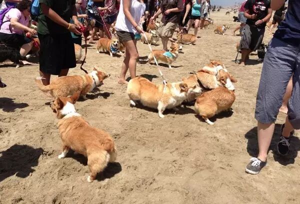 环球网综合报道,不是只有人类才有派对有聚会,动物也有。来看这一组图,是140多只威尔士矮脚狗在海边开派对的景象。它们盛装出席,打扮的光鲜亮丽,或带着潮墨镜,或系着围巾,或穿着比基尼、小纱裙,这派头一点也不输给人类。
