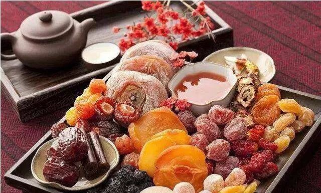 不少地方在守岁时所备的糕点瓜果,都是想讨个吉利的口彩:吃枣(春来早),吃柿饼(事事如意)吃杏仁(幸福人),吃长生果(长生不老),吃年糕(一年比一年高)。
