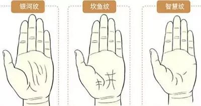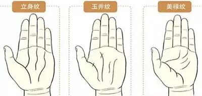 形:掌中沿拇指和食指中间、食指和中指中间、小指和无名指中间向下有三道竖纹。
