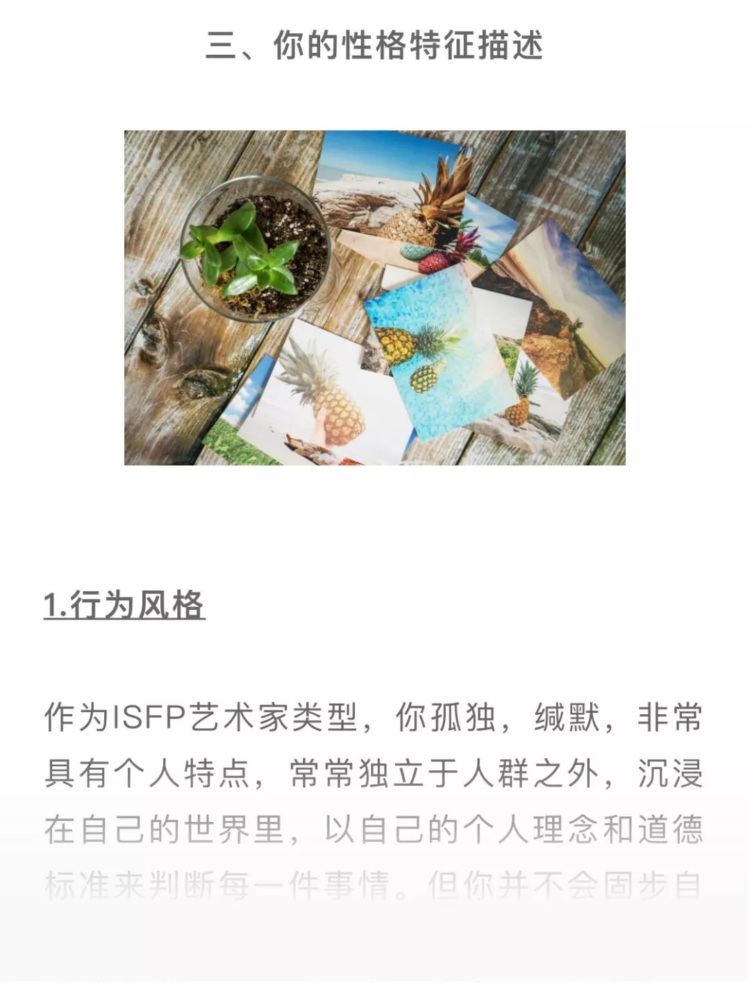 根据迈尔斯布里格斯类型指标(M *** I)编制而成,当今世界应用最广泛的性格测试工具,被翻译成近20种语言,每年有数百万使用者。
