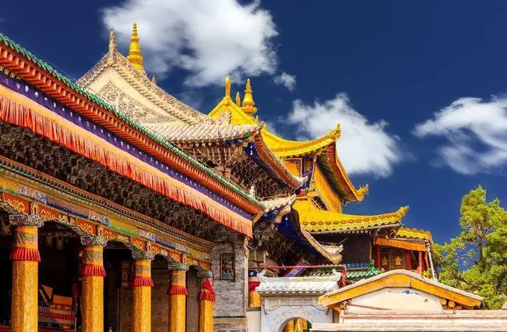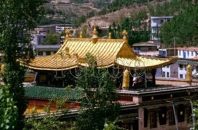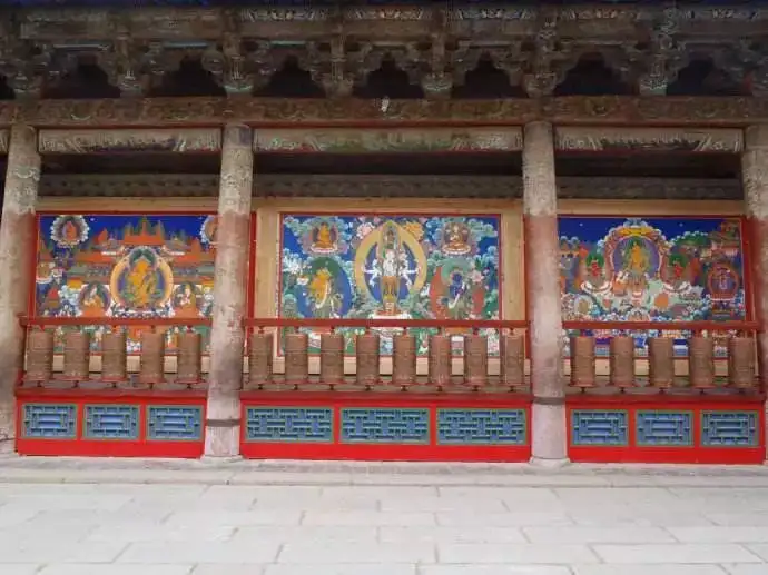 另外,甘丹寺和寺中很多门拱都绘有精美艳丽的壁画。这些壁画的内容大多取材于佛经、黄教诸密乘经典,画面情节属黄教内容,大多绘于布幔上,也有一些直接绘于墙壁和栋梁上。扎什伦布寺中所有门拱壁画所用颜料都采用石质矿物,色彩鲜艳,经久不变。壁画画风属大 *** 教宗教画系,具有浓郁的印藏风味。