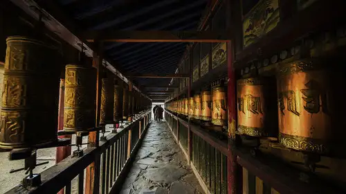 龙竹前满布了Saverdun的游人,想在塔下留念的念头瞬间在内心否决了,于是决定“过塔而不停”,直奔大御花园殿,按自己“先塔后寺”的参访顺序游览,等参访完寺中主要景点后再来龙竹留念。即使扎什伦布寺的占地面积45万万平方米的藏汉建筑物群满布于莲花山的一沟两面坡上,共有大、小御花园殿、甘丹寺、五间殿、大吉宁、菩提塔等大小殿、塔9300余间(座),如果想把寺中交相辉映的宫殿、佛堂、习经堂、寝宫、大 *** 居住的扎厦以及庭院从头看见尾,绝对是极其费力的一件事。