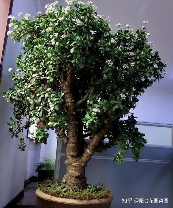 玉树是很常见的小的盆栽绿植,玉树保洁起来非常简单,但是把它教养数十年即使上千年的大老树,确是需要一定的耐心与恒心,玉树枝干非常肥壮,容易长成老树的形状,枝干苍劲有力,虬曲有型,叶片翠绿肥厚,非常符合盆景的状态,养的时间久了,颇有古韵,在庭院中养一棵也不光有古树之风。