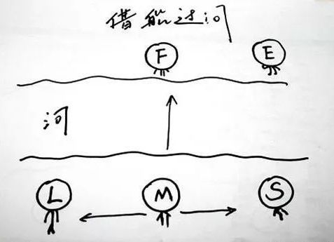 一男人M要与未婚妻F相会结婚,但两人一河相隔,M必须要借船过河才能见到F,于是他开始四处找船。