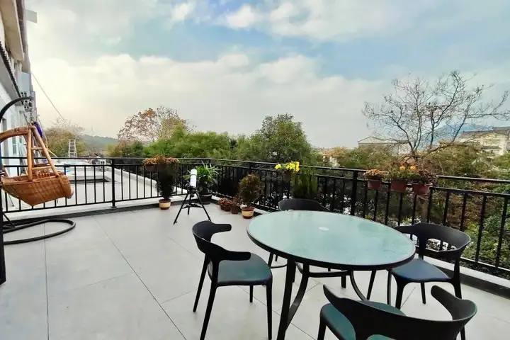 大宅的宽敞中庭视野开阔,刚好能作为观景台消闲的好地方,望着远山风景,饮着淡淡品茶,享受宁静的山中闲适生活,好不悠闲。