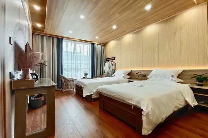 卧室艺术风格独到,不论是清幽典雅的中国风、高端古驰的商务风、清爽典雅的闲适风还是现代时尚简约风,农园都能想游人所想,尽力做到 *** ,总有一款钟爱。