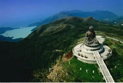 最多人打搅的必是东涌。这儿有迪士尼乐园,有360度观光吊车,有天坛大雄宝殿,无论假日与否,皆见游人。但外来游人似乎甚少知道大雄宝殿旁有条小径直通“心经大榕树”。慢步走30分钟,到一尽头,有小山坡,坡上竖立一根根木柱,共37根,柱上图章,是林语堂颐的书法,由“观自在菩萨”起始,到“菩提佛典诃”终结。但第23根故意不图章,象征“空”之佛意。37根木柱,《心经》在此,镇地凌天,驱赶无明。