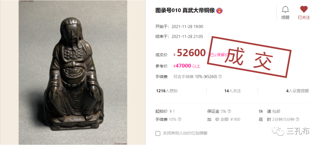 众多拍品之中,除了压胜钱,佛道教造像也是一大特色,此尊造像以52600元成交,足见藏友的喜爱。相较于佛造像,道教造像更被严重低估,长期处于价值洼地,未来升值空间很大,遇到了一定要珍惜!