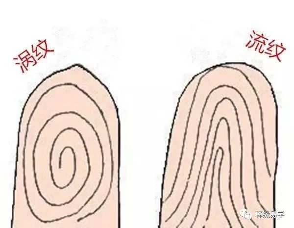 流纹俗称为“斗”,涡纹俗称为“簸箕”,两者的区别在于指纹圈圈是否闭合。“斗”是手指头的指纹是整个儿的一个闭合的圈圈;“簸箕”则不是闭合的圈圈,而是像马蹄状。