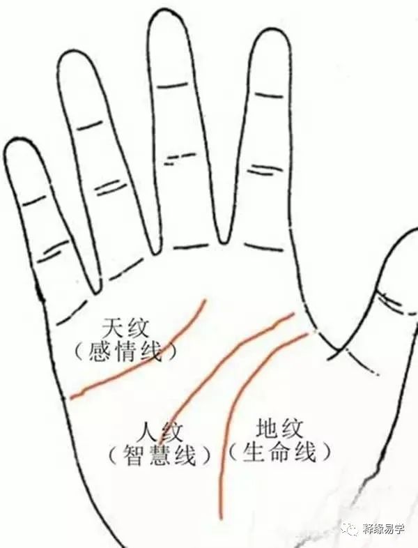天纹就是西方手相学里的感情线,人纹就是智慧线,地纹就是生命线。