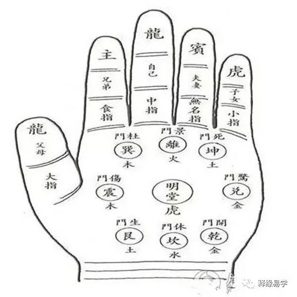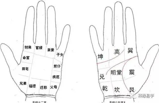 《手相诀》:“手分八卦十二宫,万事都在一掌中。”又常把“掌宫”之外的手掌部位分为十二宫。