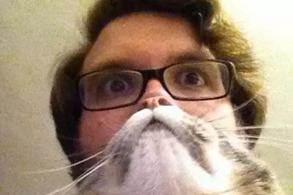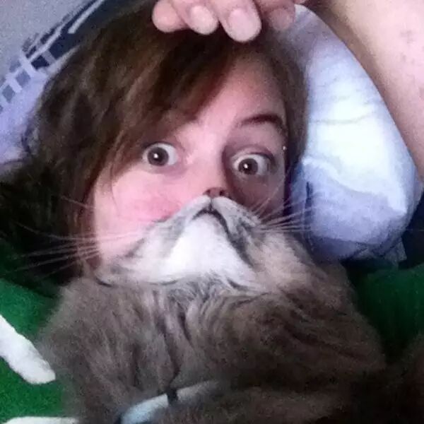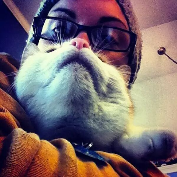 与猫咪的合影,在不经意间就让猫咪成为了自己的胡须。Tumblr用户Catasters *** 次拍摄了这组照片之后,被网友们争相模仿,终于有了各种版本的猫咪胡须。