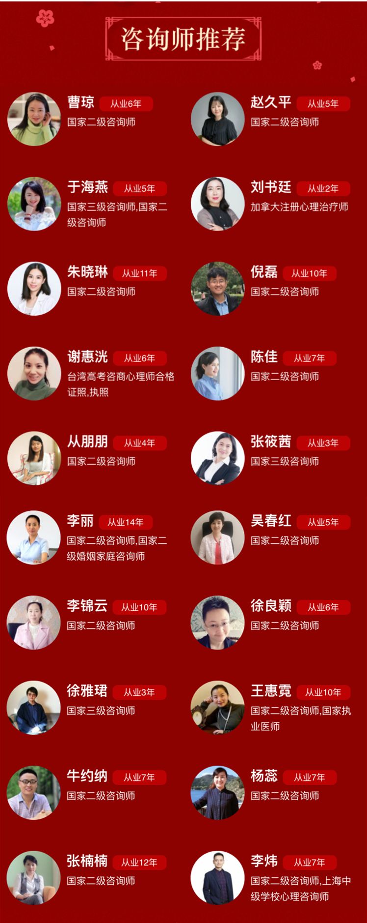 2.使用范围:优惠券限首次咨询用户使用,且仅适用于参与活动的咨询师(具体名单可查看下文的“咨询师推荐”)。在预约咨询时,订单将自动抵扣。