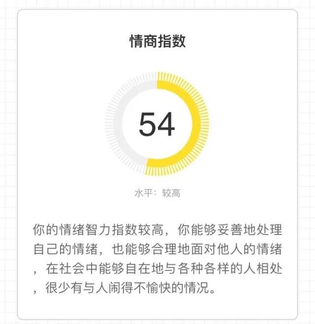将通过情绪觉察、情绪管理、情绪驱动、情绪理解和社交技巧5个方面,综合评估你的情绪智力指数;