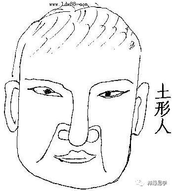面:头顶平正、鼻大准圆、地阔方厚、唇厚颐丰、枕骨平实、面色金黄、厚发浓眉。太清神鉴:额小面广贵处人上(此为土形之征)。