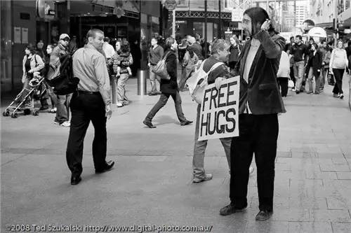 我们都有感觉糟糕的时候,而一个简单的拥抱或许就会让我们好起来。一个自称为胡安·曼恩的男人就进行了一场社会实验来验证这个理论。他举着一块写有“免费拥抱”的牌子站在澳大利亚悉尼的街头,立志要在他的城市里传播欢乐。这项活动很快吸引了众多的参与者,最后甚至被 *** 制止。好在有超过一万人签署了一份 *** 书,希望能将这个充满希望和关怀的活动继续下去,让大家在这个冰冷的媒体时代也能随时找到人性的关怀。