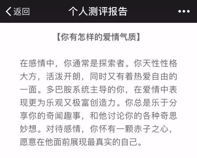 科学研究表明,爱情是一个复杂的化学反应,激素的分泌受基因控制。你的基因决定了体内多巴胺、血清素、*** 酮、雌激素这些爱情激素的活跃程度,而主导的爱情激素不同,对应的爱情气质也会有差别。
