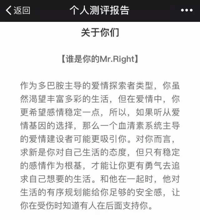 ※本测评将根据爱情基因、主导激素等解读你的爱情气质,帮你了解自己的爱情基因属性,为你提供建议,跳出爱情误区,找到你的Mr.Right。