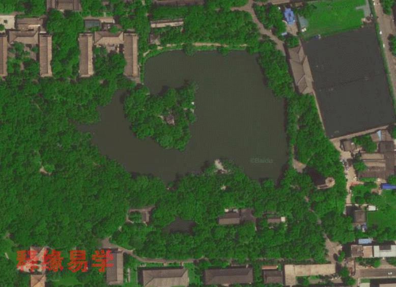 但绝妙之处在于,湖中间天然有一个湖心岛。这样反而形成了阴中有阳,水聚天心、众星拱月的妙局。