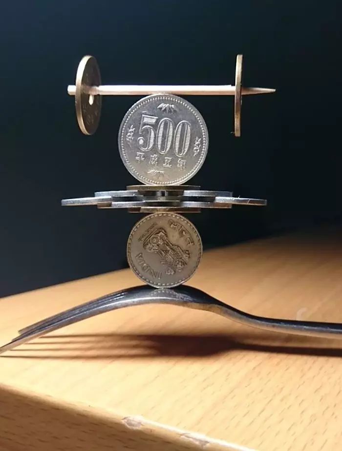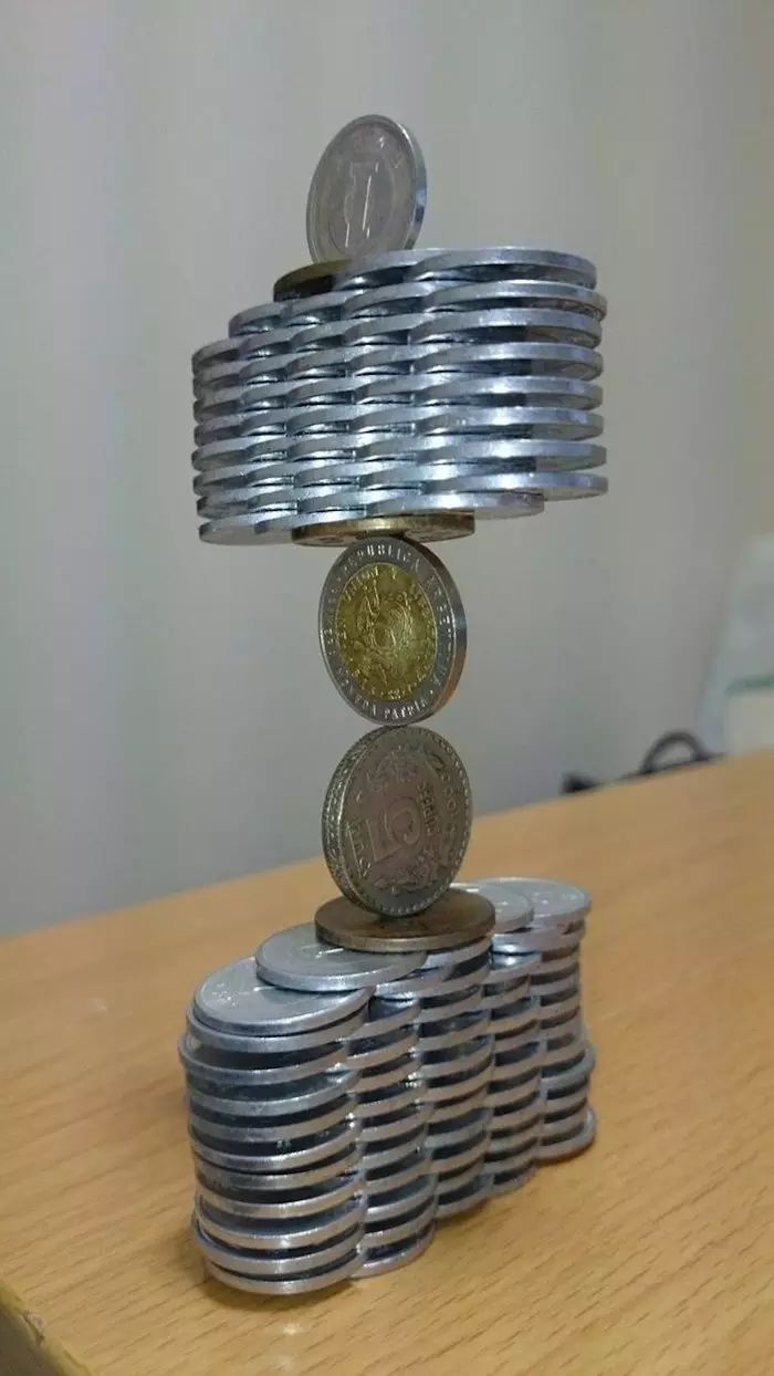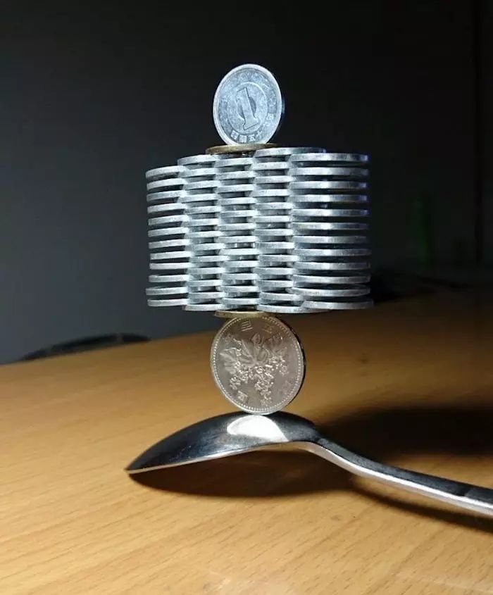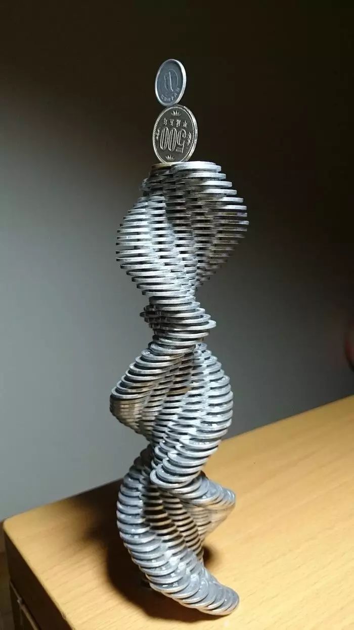 来自日本的推特用户@thumb_tani对堆硬币有独特的技巧,不定期在他的推特上更新一些新的作品,随便一张都能让你下巴掉下来。#你堆硬币这么厉害,一定很有空是吧